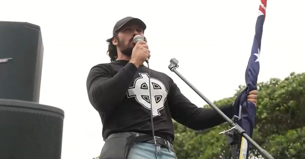 Il 34enne è salito sul palco alla fine della marcia e ha sostenuto le idee neonaziste prima di essere immediatamente arrestato dalla polizia.