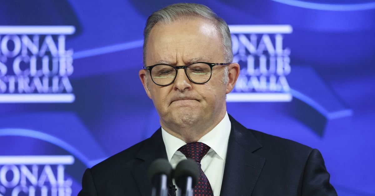 Il primo ministro Anthony Albanese durante un discorso al National Press Club of Australia a Canberra. (Alex Ellinghausen)