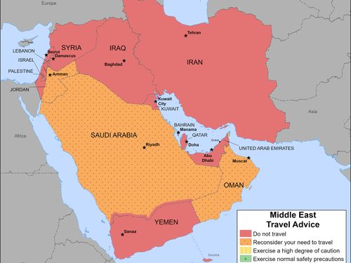 Il consiglio si applica a tutti i paesi con un avviso di “non viaggiare”, che attualmente comprende tutto il Medio Oriente ad eccezione dell’Arabia Saudita e dell’Oman.