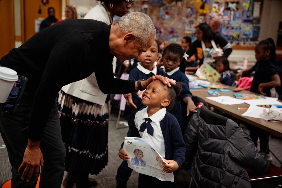 Dopo aver letto “Volare liberi: come i sogni di Bessie Coleman hanno preso il volo”, Obama ha scherzato con i bambini e ha chiesto loro i loro sogni.