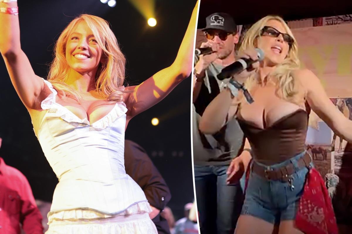 Più tardi, si è trasformata in quella bianca arruffata Body Prima Cotta ($ 89), completando il look con stivali da cowboy marroni e occhiali da sole con montatura dorata. Fuori servizio, è salita sul fidanzato Le spalle di Scooter Braun per assistere al set di Ella Langley, agitando le mani e cantando “Choosin’ Texas”.