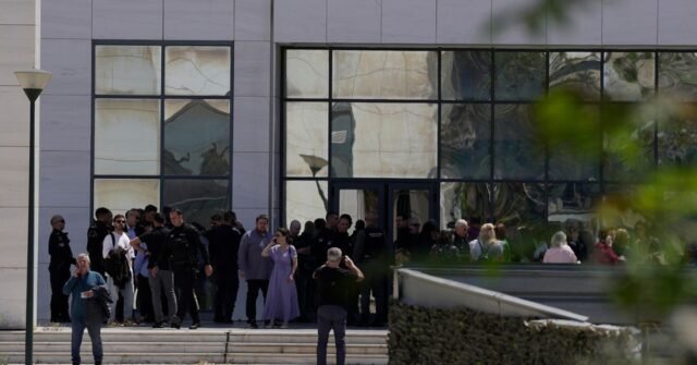 Le riprese dell’emittente statale ERT mostravano gli equipaggi delle ambulanze che trasportavano almeno tre persone dal tribunale alle ambulanze in attesa.