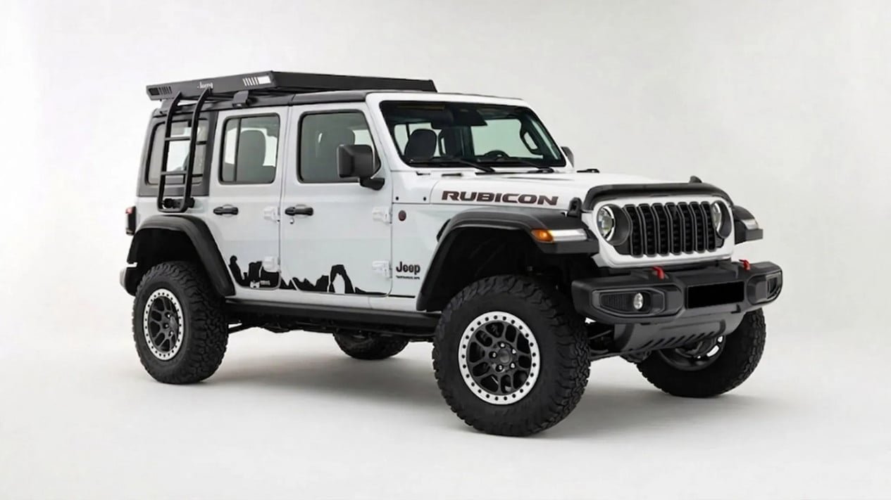 Alcune delle modifiche immediatamente visibili includono un portapacchi completo di scaletta laterale, speciali ruote beadlock fuoristrada, parafanghi più larghi e decalcomanie laterali in stile mappa di esplorazione. Jeep include anche deflettori dell’aria e tergicristalli ad alte prestazioni progettati per mantenere pulito il parabrezza durante la percorrenza di terreni accidentati.