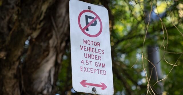 Cartelli come questo, che vieta il parcheggio di veicoli pesanti, rimorchi e roulotte, potrebbero presto apparire nel Sutherland Shire Council. (Wolter Peeters)