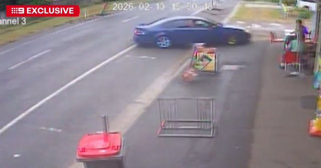Da battere il cuore CCTV il filmato ha catturato il momento in cui un’auto è entrata senza controllo Queenslandscontrandosi con due adolescenti.