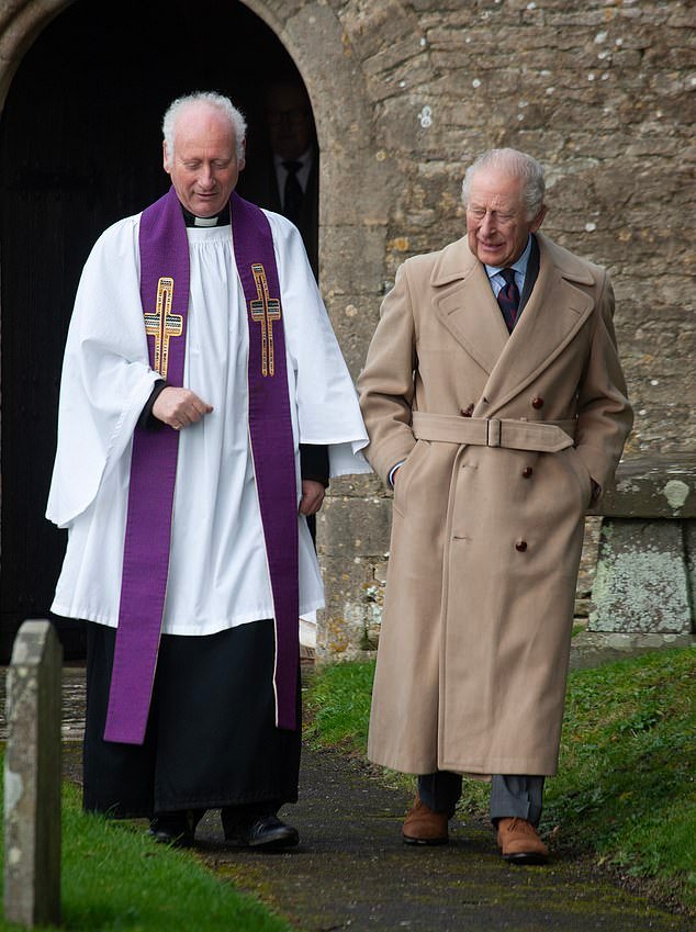 Charles, 77 anni, è stato fotografato con una smorfia mentre lasciava la chiesa domenica mentre lo scandalo su suo fratello Andrew Mountbatten-Windsor continua a scuotere la famiglia reale