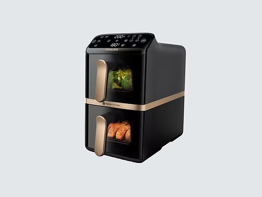 Philips afferma che la friggitrice a doppia pila da 10 litri può “gestire facilmente” fino a 1,4 kg di patatine fritte, 2 kg di verdure o 24 cosce di pollo. Gli amanti dell’arrosto della domenica si rallegreranno poiché Philips afferma che questa friggitrice ad aria può contenere un pollo intero da 1,2 kg in ogni cestino da 5 litri.