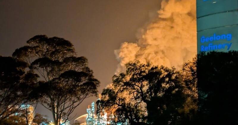 Le squadre dei vigili del fuoco hanno domato un feroce incendio nella raffineria di Geelong dopo la segnalazione di esplosioni e fiamme. Foto: FOTO IMMAGINE PR