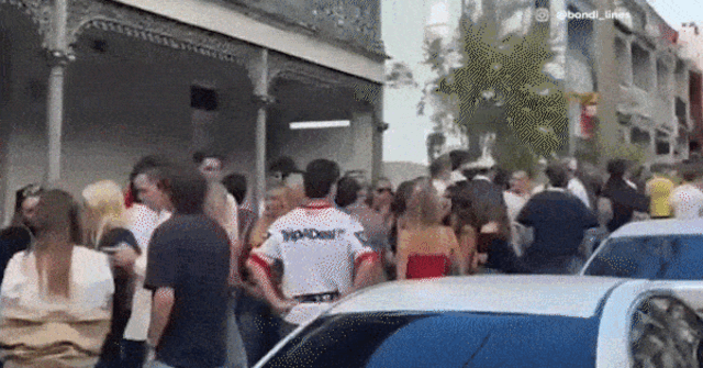 Il pub londinese di Paddington, Sydney, sta ospitando per la prima volta una festa di strada e una coda enorme, da cinque a sei persone, si è allungata intorno all’isolato entro le 8.40 di questa mattina con solo ingresso garantito.