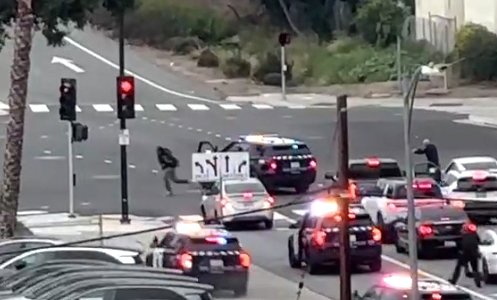 Il video di un testimone mostra le auto della polizia di San Jose, a sirene spiegate, che corrono verso un trafficato incrocio del centro. Risuonano degli spari. Un uomo secondo le autorità era stato lì molteplici scontri a fuoco con la polizia – e aveva sparato alla testa a un sergente – emerge dal lato del conducente di un’auto della polizia, poi fugge dagli agenti prima di crollare in mezzo a una grandinata di colpi di arma da fuoco.