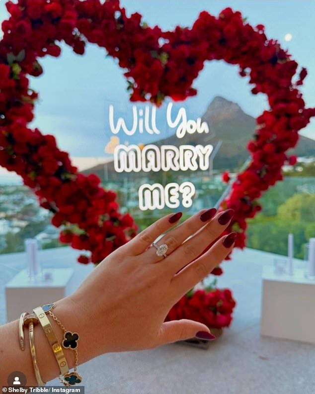 Shelby, 33 anni, ha sfoggiato il suo enorme anello ovale con diamanti con i suoi follower dopo aver posto la domanda durante le loro vacanze.