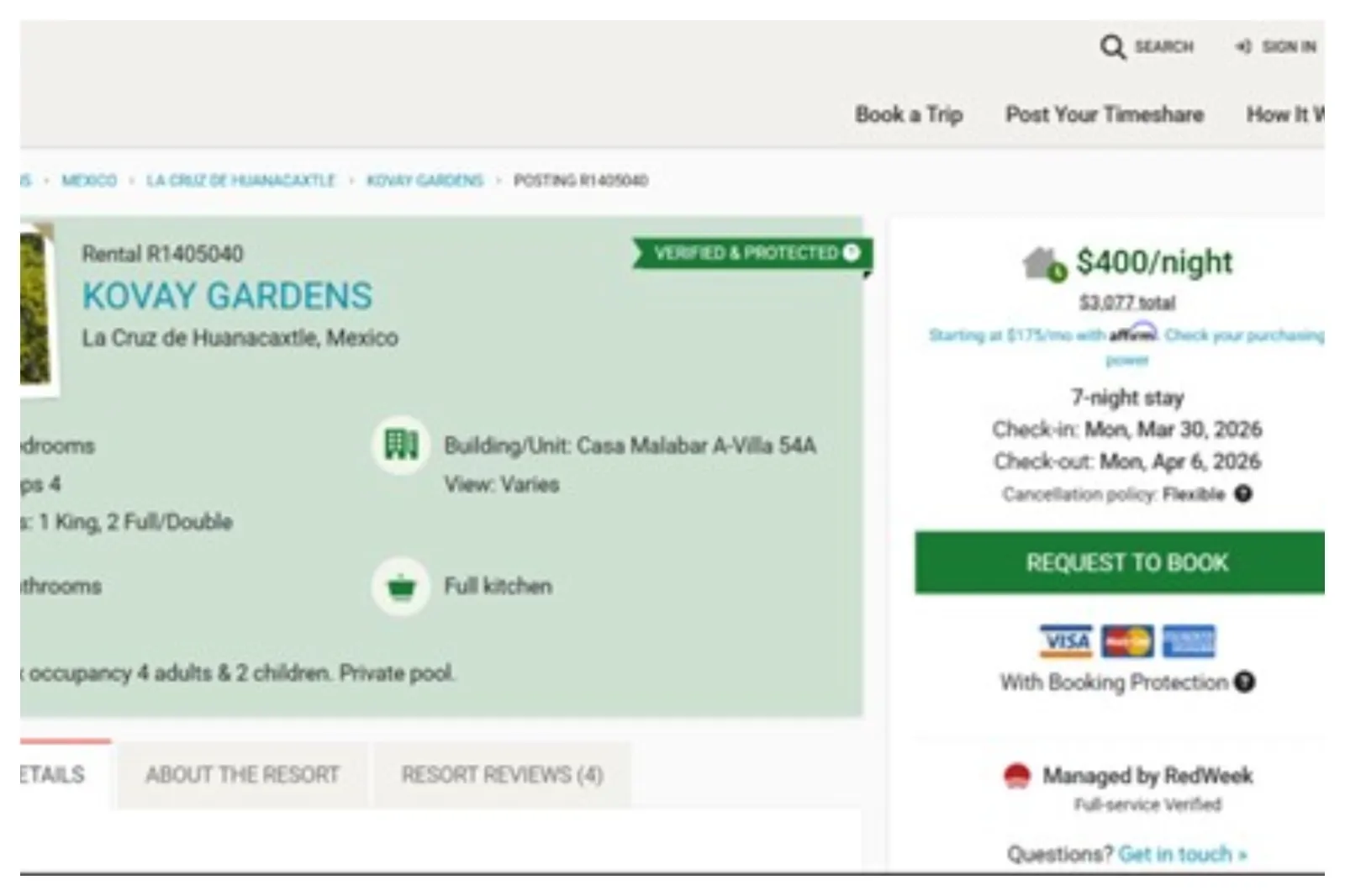 Newsweek ha trovato annunci pubblicizzati sul mercato della multiproprietà RedWeek e sul sito web di affitti a breve termine Airbnb.