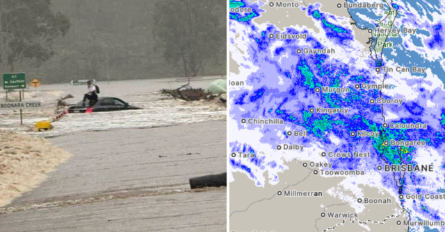 Il video mostra l’acqua che scende dal monte Coolum sulla Sunshine Coast mentre il terreno saturo ha causato la caduta degli alberi su Brisbane.
