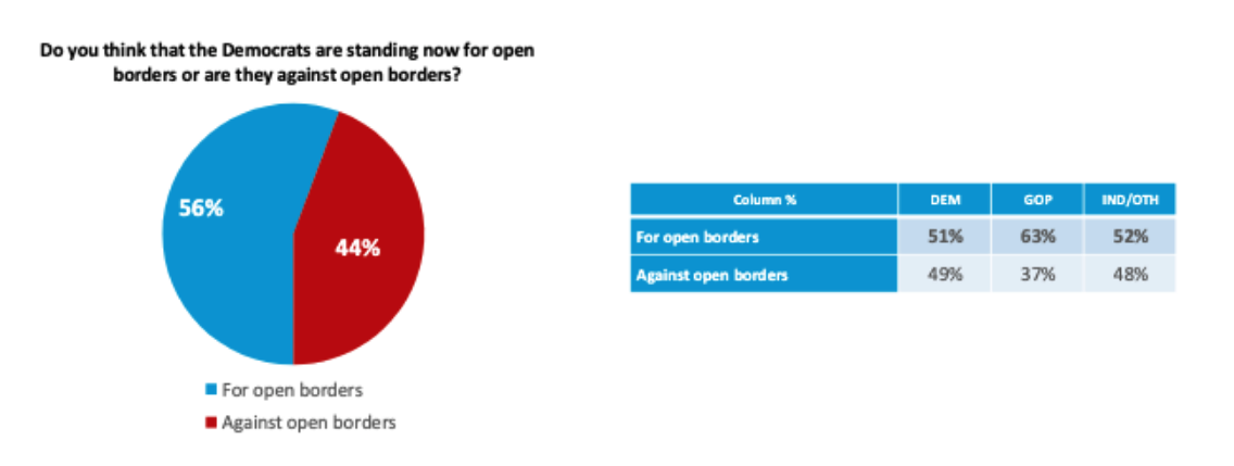 Il 51% dei democratici, il 63% dei repubblicani e il 52% degli indipendenti e degli “altri” concordano sul fatto che il Partito democratico vuole frontiere aperte con il resto del mondo. dice il sondaggio.