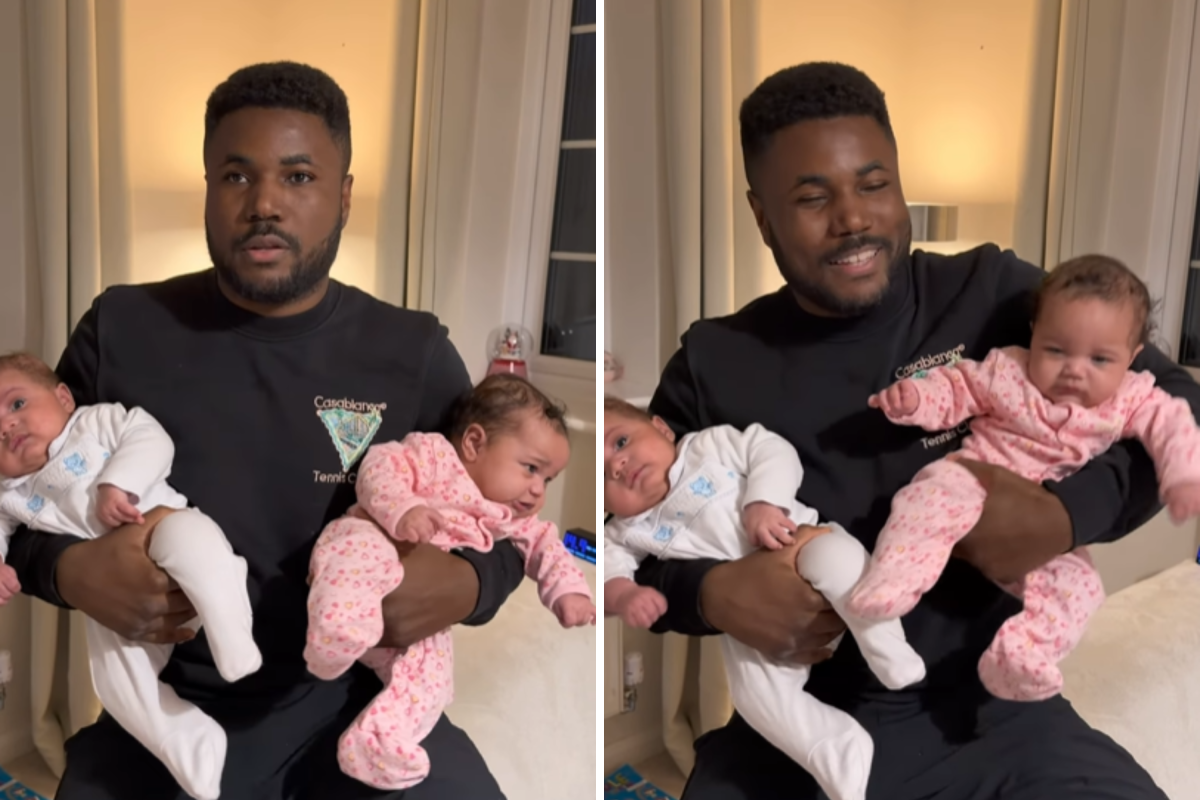Souleyman Bah (@blinddaduk) ha condiviso una bobina su Instagram rispondendo a una domanda che ha sentito da quando ha accolto i gemelli Angelo e Nemaya con la sua compagna Saskia Symington: “Come fa un papà cieco come me a distinguere questi gemelli?”