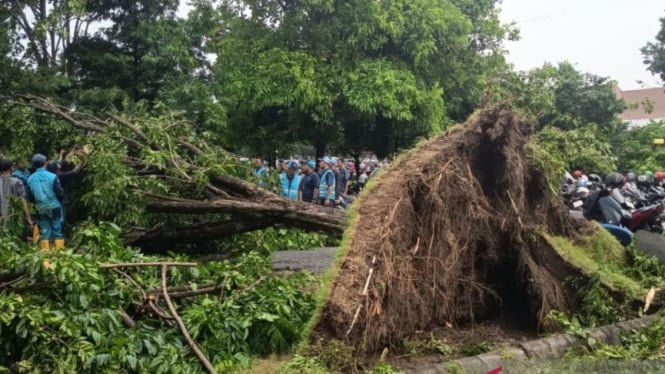 Ha precisato che attualmente il suo gruppo sta maneggiando e ripulendo gli alberi caduti situati nel parcheggio delle moto del Terminal 1 dell’Aeroporto Internazionale di Juanda.