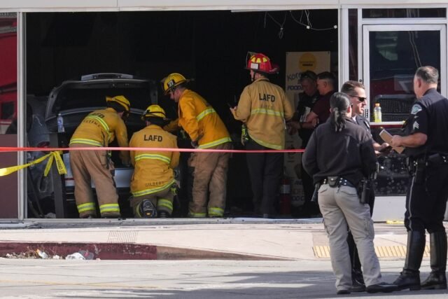 I paramedici hanno curato sei o sette pazienti, alcuni dei quali in gravi condizioni, ha detto Lantz. Le riprese televisive mostravano una berlina color argento completamente all’interno del negozio su Westwood Boulevard, con squadre di emergenza che lavoravano all’interno e intorno all’edificio.