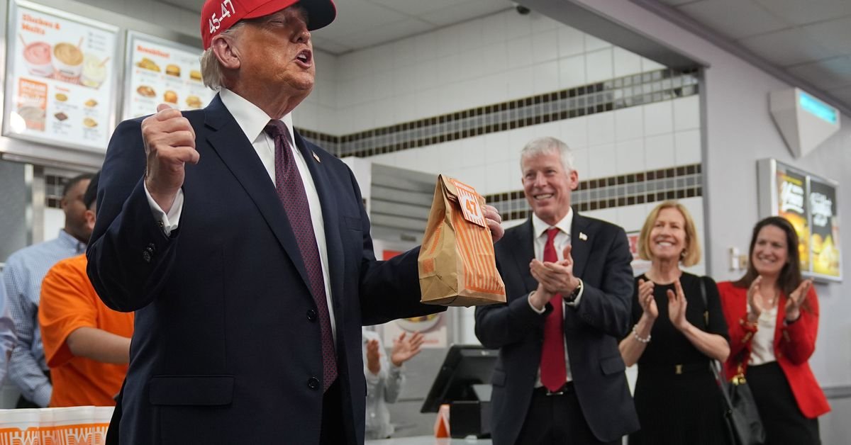 Il presidente Donald Trump visita un ristorante Whataburger a Corpus Christi, Texas, (AP)