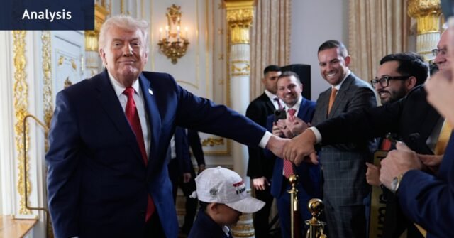 Il presidente degli Stati Uniti Donald Trump stringe la mano ai sostenitori venerdì a Mar-a-Lago.Credito: AP