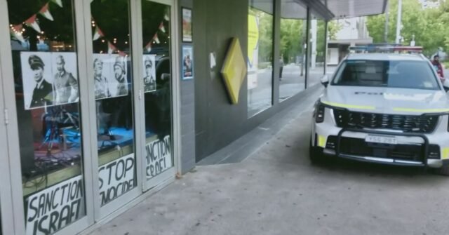 Il Dissent Cafe and Bar ha poster raffiguranti il ​​primo ministro israeliano Benjamin Netanyahu, presidente degli Stati Uniti Donald TrumpIl vicepresidente JD Vance e il miliardario Elon Musk in uniformi naziste sulle loro porte con cartelli con la scritta “sanzionare Israele” e “fermare il genocidio”.
