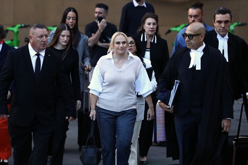 Rebel Wilson arriva alla Corte Federale di Sydney il 28 aprile 2026. (Dominic Lorrimer)