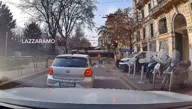 Le riprese della dashcam hanno catturato il momento in cui un tram è deragliato e si è schiantato nel centro di Milano venerdì