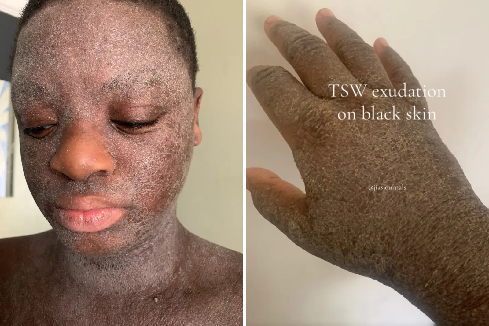 “Una delle cose più allarmanti è che la TSW si è diffusa in aree in cui non avevo mai avuto problemi alla pelle o applicato creme steroidee”, ha detto Patrick. “Ho anche sperimentato una continua desquamazione della pelle del viso, un’esperienza davvero straziante.