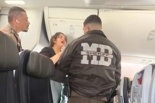 Una viaggiatrice dell’American Airlines impazzisce perché presumibilmente è stata lanciata dall’aereo per aver riprodotto video sull’altoparlante