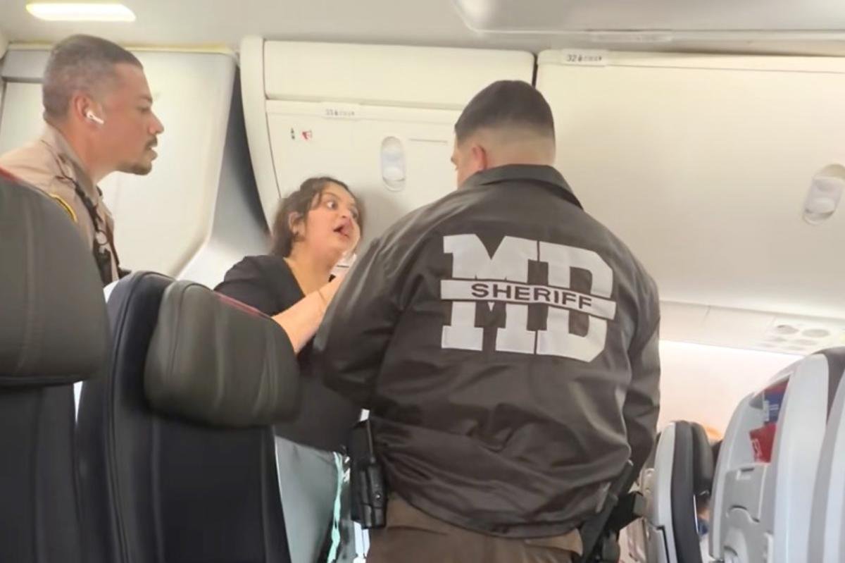In il videola donna ha imprecato contro l’equipaggio di cabina prima di essere condotta giù dall’aereo con i poliziotti, anche se ha affermato di aver smesso di riprodurre la clip dopo il “secondo avvertimento”.