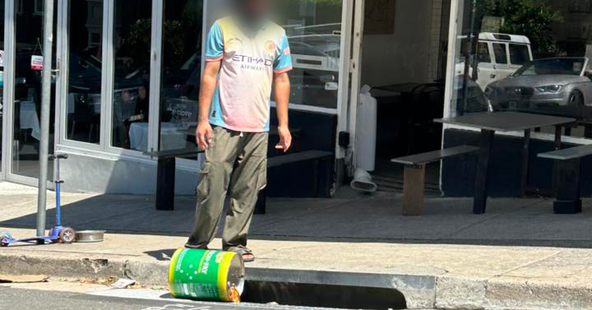 Un video condiviso sui social media mostrava l’uomo con un grande contenitore fuori dal Grumpy Baker a Coogee domenica.