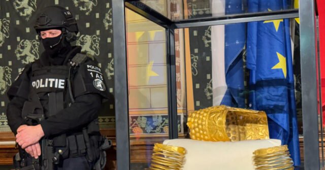 Sotto la guardia di poliziotti pesantemente armati e con passamontagna, i pubblici ministeri hanno svelato l’elmo di Cotofenesti di 2.500 anni fa, uno dei tesori nazionali più venerati della civiltà Dacia della Romania, durante una conferenza stampa nella città olandese orientale di Assen.