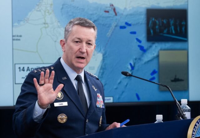 “Un giovane ufficiale prende il microfono e trasmette, e cito: ‘Non tentare di violare il blocco. Le navi verranno abbordate per interdizione e sequestro, in transito da o verso i porti iraniani. Giratevi o preparatevi a essere abbordati. Se non rispettate questo blocco, useremo la forza,'” ha detto Caine.