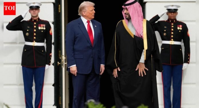 Il corrispondente TOI da Washington: L’energia verde potrà anche non essere apprezzata negli Stati Uniti, ma le bandiere verdi sono tornate nella sanguinaria America. MAGA Supremo Donald Trump ha steso martedì il tappeto rosso per il principe saudita Mohammed bin Salman (MBS), riabilitando un leader a lungo evitato per l’omicidio del 2018 dell’editorialista del Washington Post Jamal Khashoggi e rimodellando le relazioni degli Stati Uniti nella regione in mezzo ai legami sempre più traballanti di Washington con l’India.Una cerimonia di benvenuto sul South Lawn della Casa Bianca, addobbato con bandiere verdi saudite accanto a stelle e strisce, un cavalcavia militare e una cena in cravatta nera più tardi in serata hanno segnato il ritorno di MBS nella capitale degli Stati Uniti dopo una pausa di sette anni, segnalando non solo un disgelo diplomatico ma un ripristino strategico su vasta scala, elevando Riyadh al centro dell’agenda economica e geopolitica dell’amministrazione.
