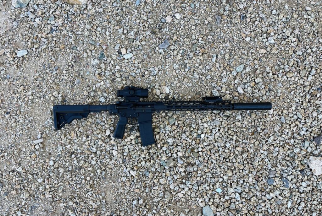 Il grilletto è un ALG Advanced Combat Trigger e sai che è speciale sul colpo numero uno. Abbiamo inserito circa 500 colpi nell’SA-15 PRO solo per essere sicuri che non avevamo a che fare con un’arma nuova, cioè un’arma da fuoco che era stata appena messa insieme attorno all’idea di un ricevitore pieghevole. Ci siamo subito resi conto che il fucile era un’arma da fuoco di precisione e la possibilità di piegarlo significava solo che avevamo in mano un’arma da fuoco di precisione resa più facile da riporre e trasportare grazie alla caratteristica di piegatura.