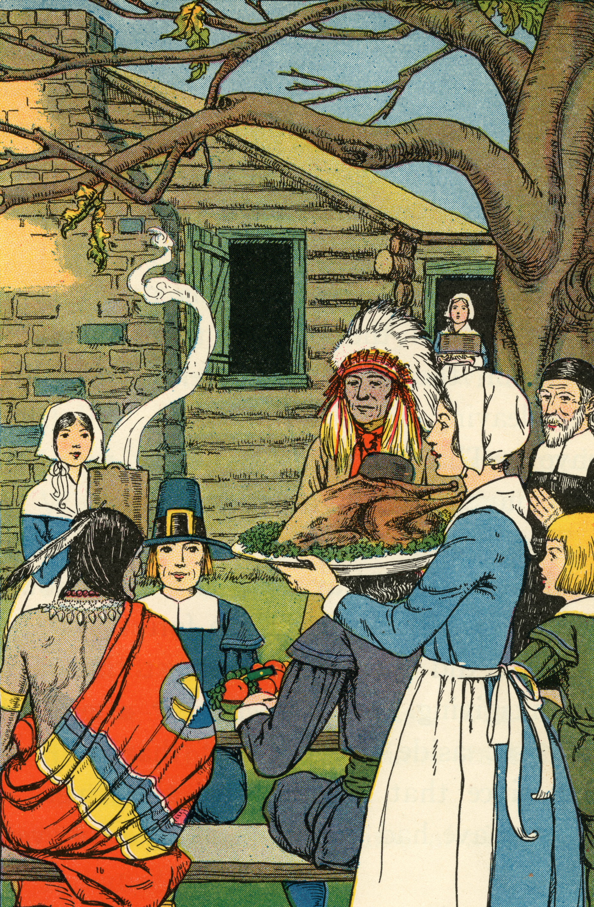 È lì che finisce. E questa è la storia del benessere. Ma questo non si avvicina nemmeno alla storia vera. Sapete, in alcuni libri di testo il Ringraziamento viene spiegato come una festa per la quale i pellegrini ringraziavano gli indiani per avergli salvato la vita. Non era quello. Ciò è accaduto, ma il Ringraziamento è stata una devota espressione di gratitudine, i pellegrini, a Dio per la loro sopravvivenza e per tutto ciò che ne faceva parte.
