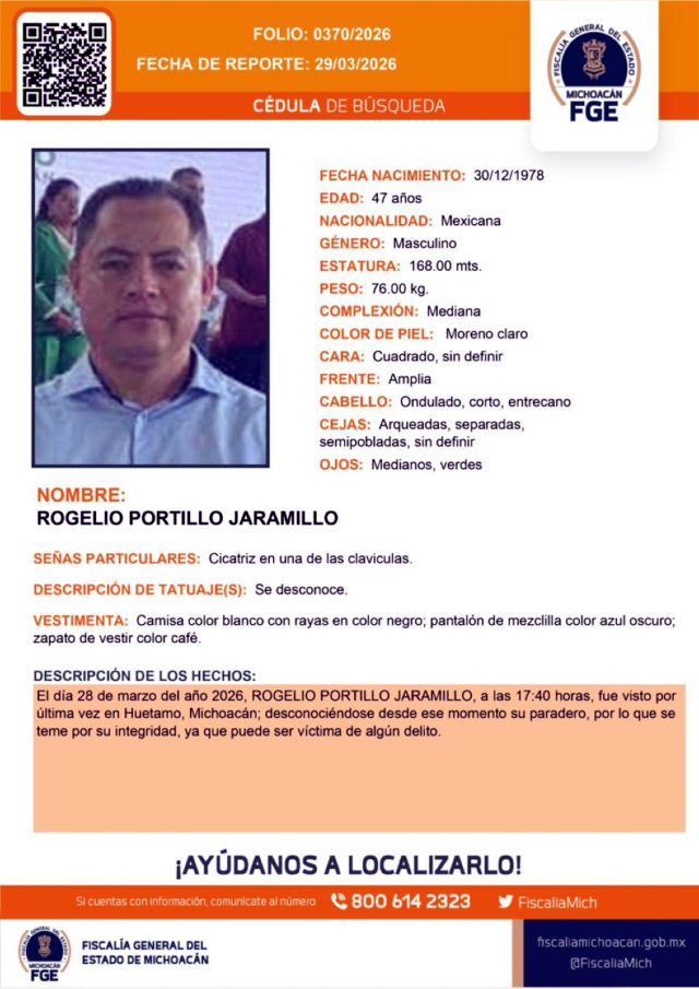L’incidente è passato in gran parte inosservato per diversi giorni in Messico dopo la scomparsa, il 28 marzo, di Rogelio Portillo Jaramillo, l’attuale capo dell’ufficio federale messicano di previdenza sociale nella città di Huetamo, Michoacan. VDiverse persone vicine al politico sostengono che Portillo sia stato rapito da uomini armati sconosciuti. Hanno rivelato che il suo camion bruciato era stato ritrovato questa settimana e i funzionari governativi affermano pubblicamente che è una persona scomparsa.