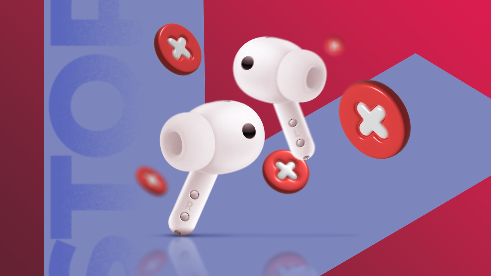 Un auricolare con accanto un avviso che informa che manca l'altro.
