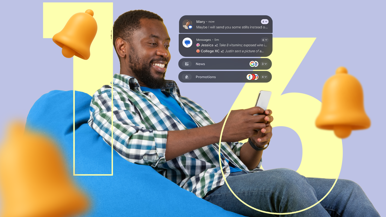 Certo, puoi sfogliare le impostazioni di notifica per scegliere quali vuoi vedere, oppure puoi utilizzare la nuova funzionalità in Androide 16 per organizzare le tue notifiche in schermate per argomento, facili da visualizzare quando vuoi, senza intralciare la tua esperienza con lo smartphone.